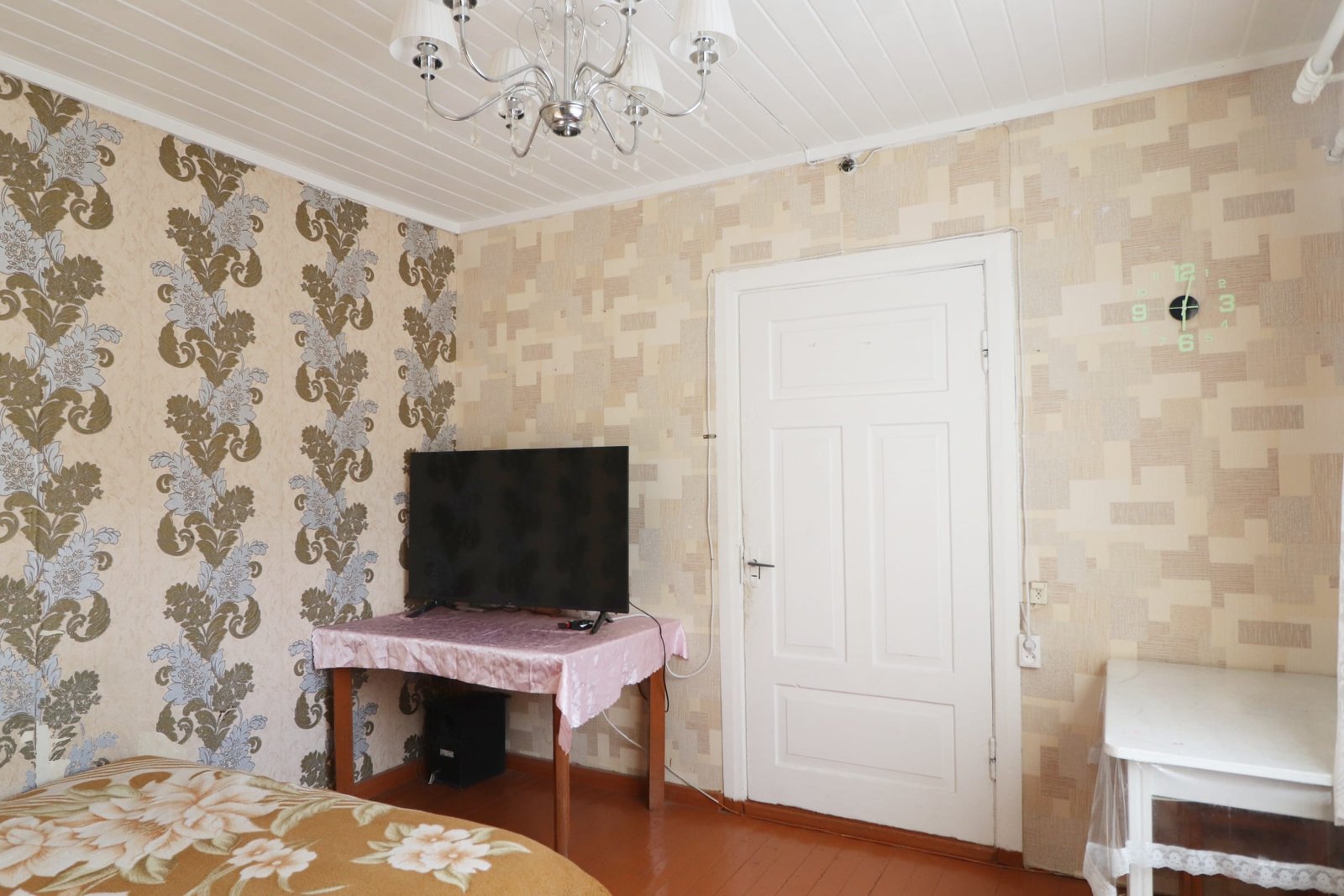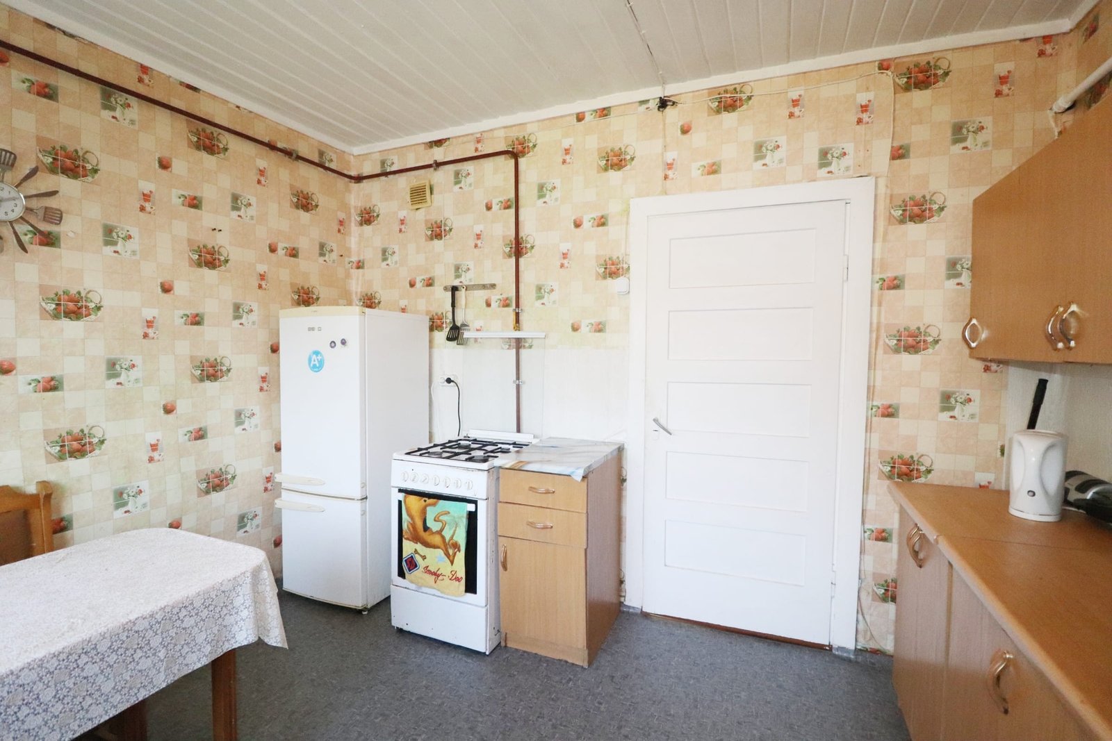 – Tvarkingas butas – sienos tapetuotos, grindys ir lubos medinės.