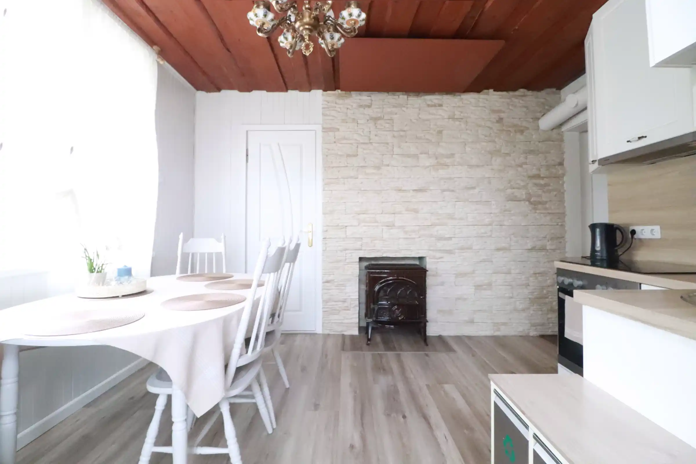 -Šildymas: židinys + elektra;
